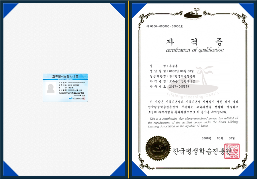¡Ø º» ±³À°¿ø ÀÚ°ÝÁõÀº ±¹°¡±â°ü Çѱ¹Á÷¾÷´É·Â¿¬±¸¿ø¿¡ µî·ÏµÈ ¹Î°£ÀÚ°ÝÁõÀ¸·Î À̷¼ ±âÀç ¹× ¼·ù Á¦ÃâÀÌ °¡´ÉÇÑ ÀÚ°ÝÁõÀ̸ç, À¯È¿±â°£ ¹× °»½ÅÀÌ ÇÊ¿ä¾ø´Â Æò»ýÀÚ°ÝÁõÀÔ´Ï´Ù.